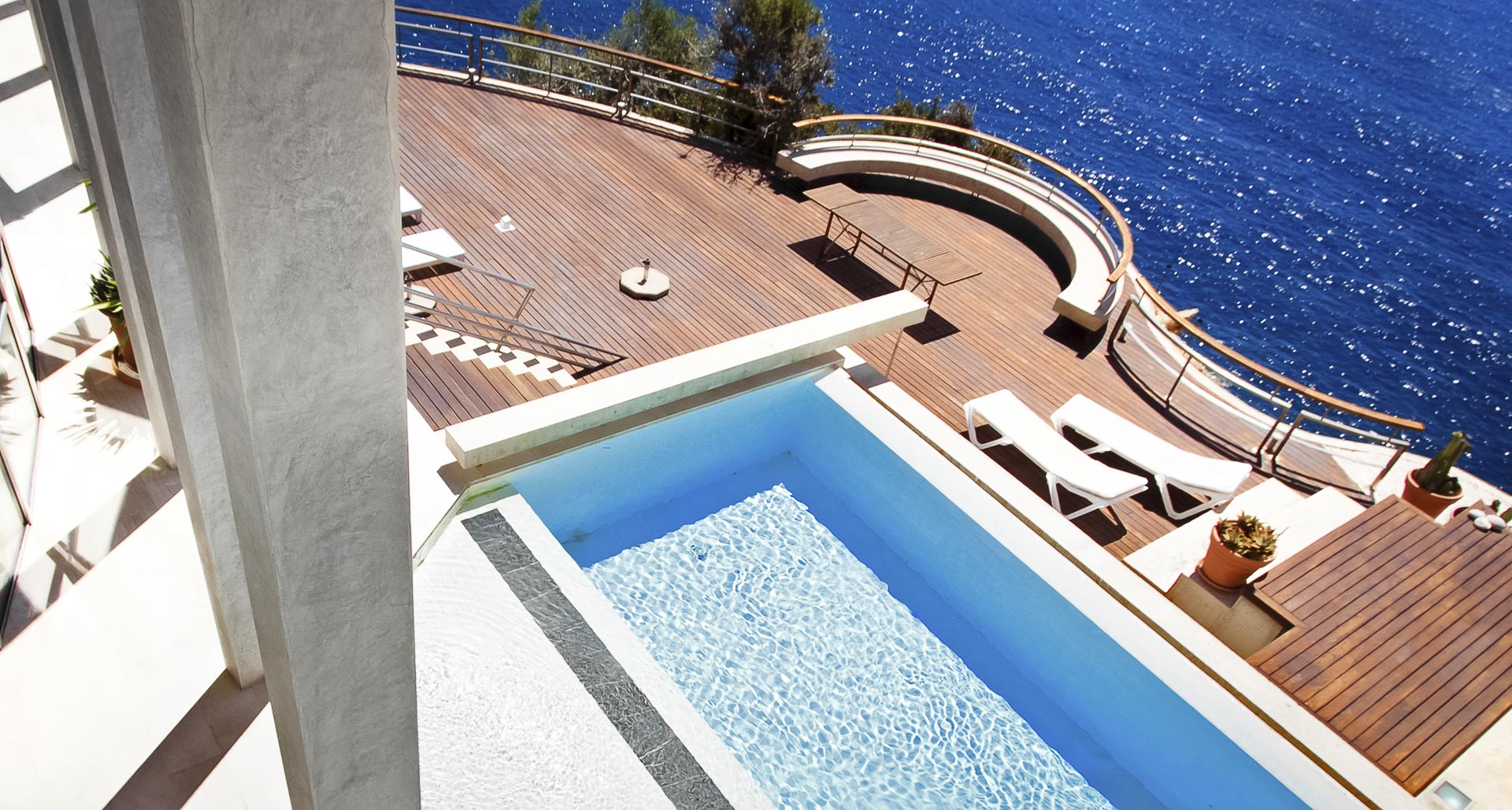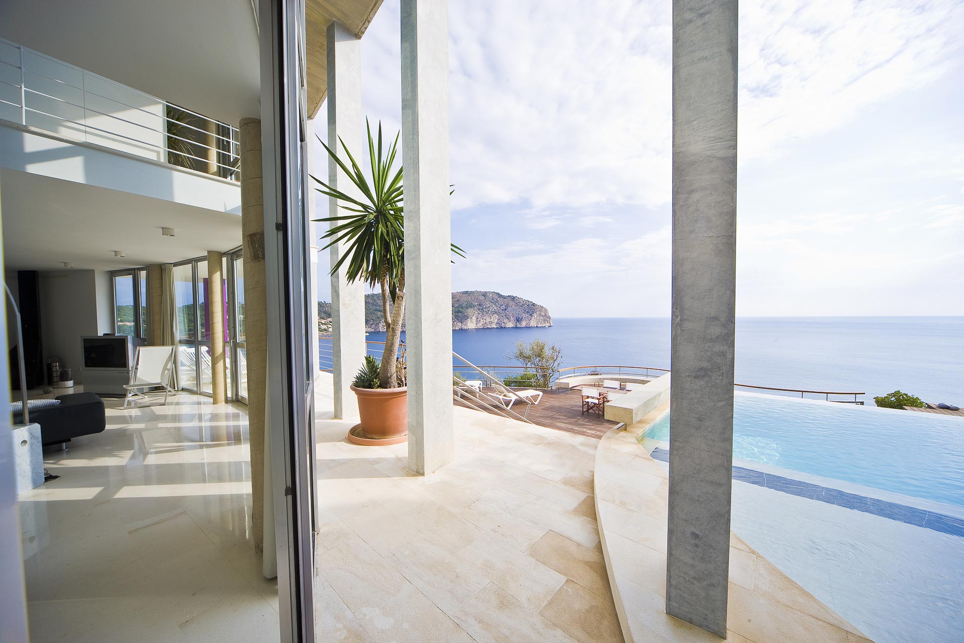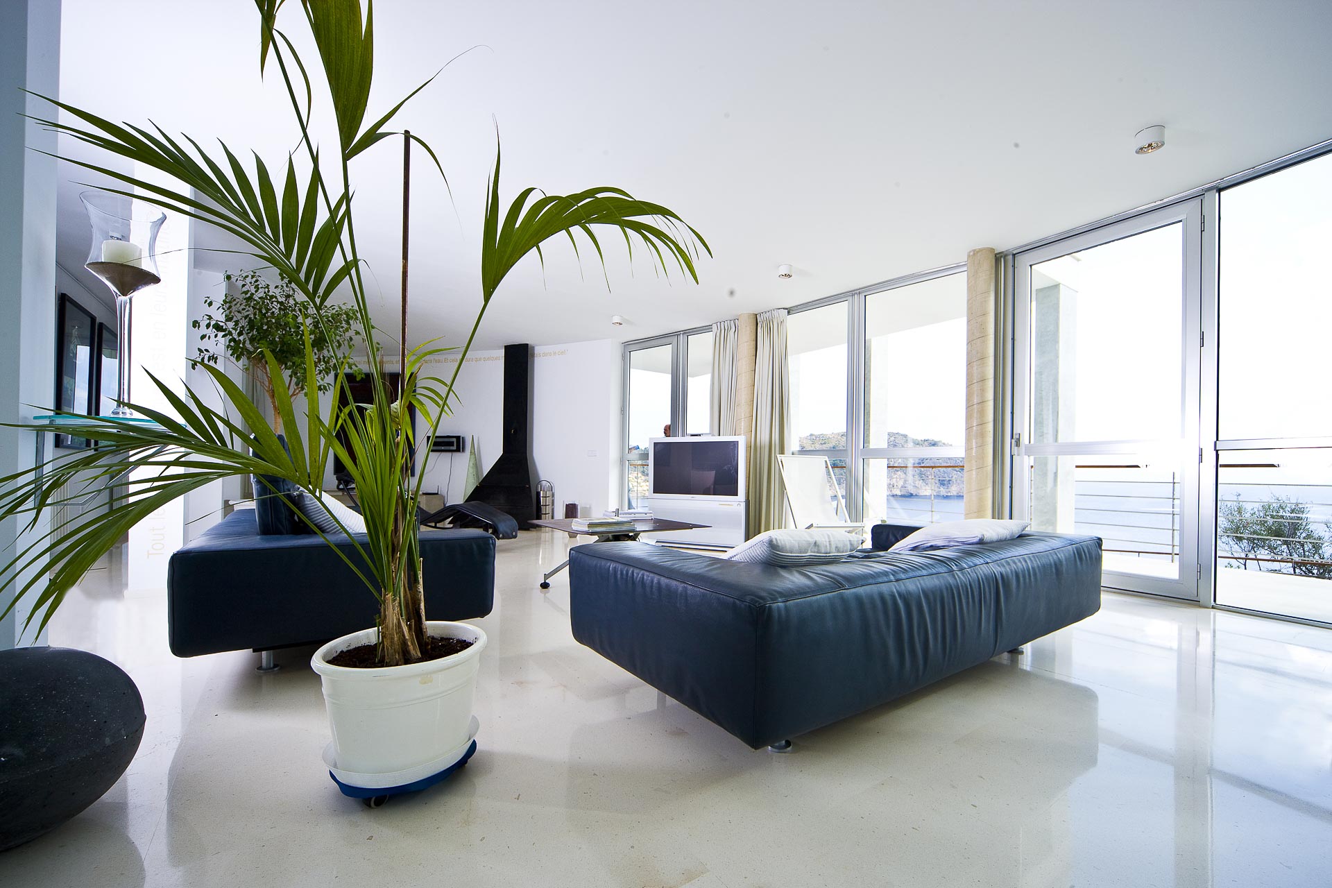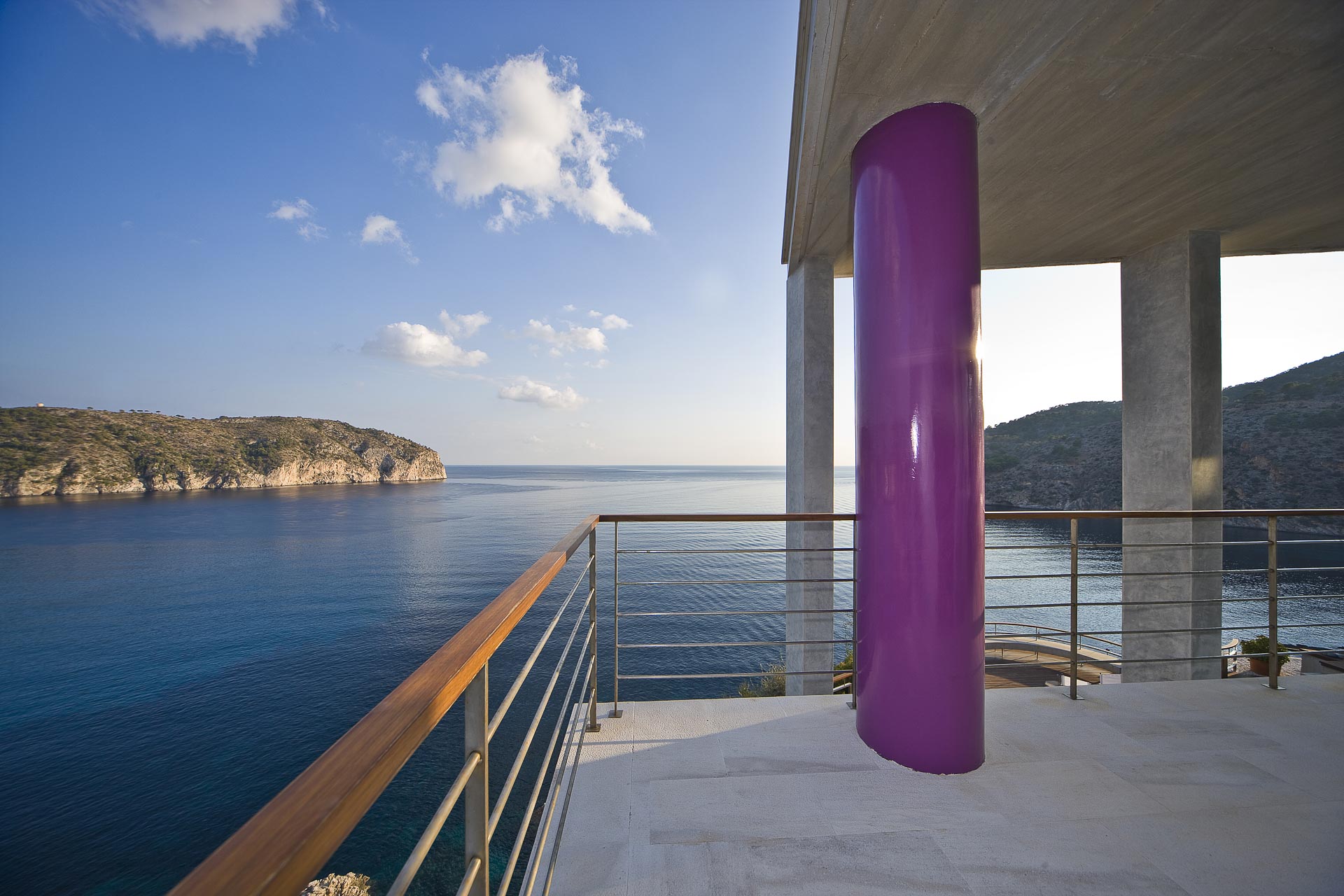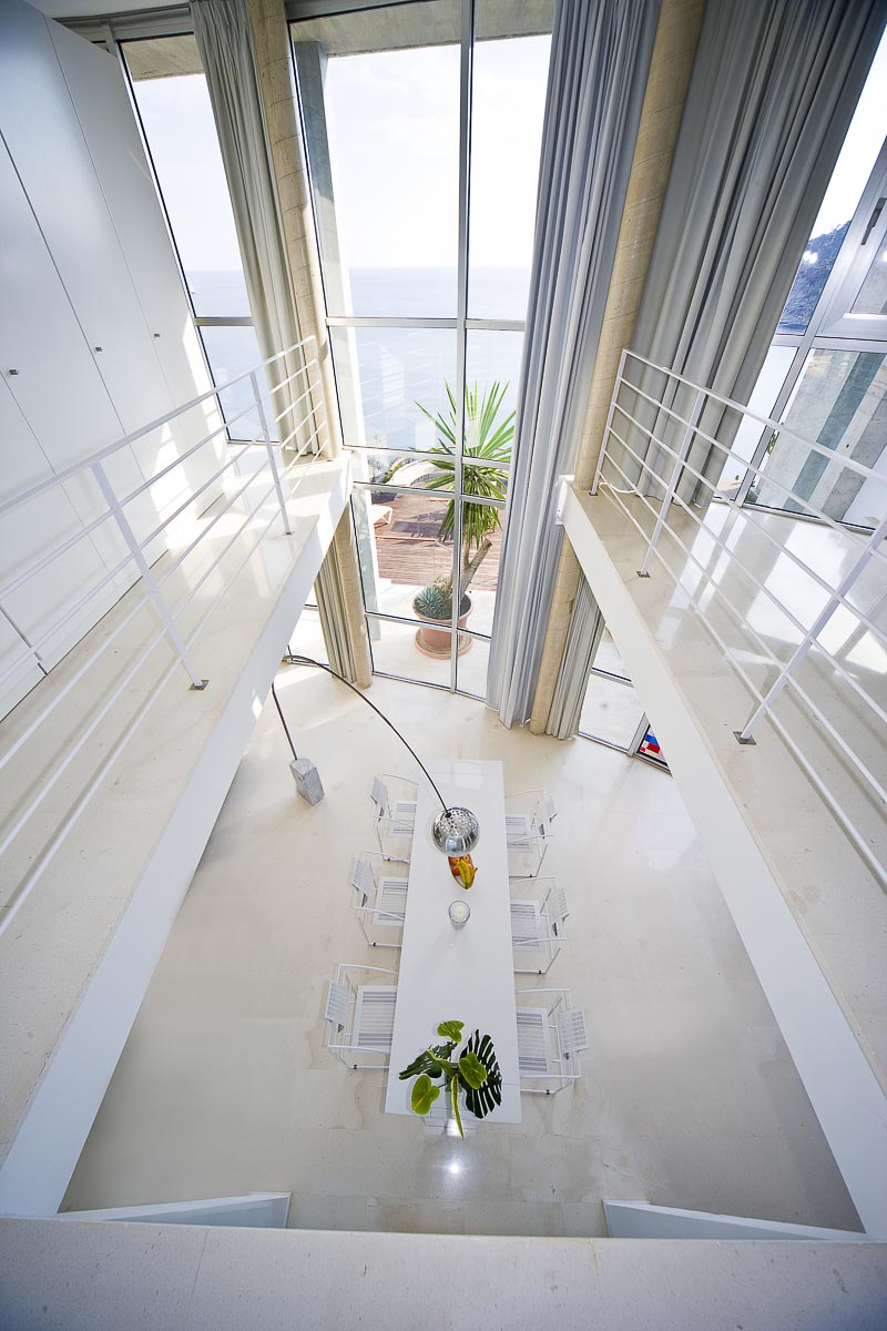 Es como un moderno teatro. El acceso no es una entrada normal, sino como un portal teatral. Por una escalinata se asciende a una gran entrada acristalada. La idea es que uno entra en su propio palazzo y visita su propio teatro o su propia ópera personal. Es como un sueño, que es como ha de ser para mí la arquitectura. Antes de comprar el solar, pasé horas y horas sentado bajo un pino meditando, mirando el mar. De esta meditación nació el proyecto. En el interior -sobre el escenario- no hay paredes, sólo transparencia por medio de fachadas de cristal. Precisamente por eso el proyecto se llama “vivir bajo la luz del Mediterráneo”.
